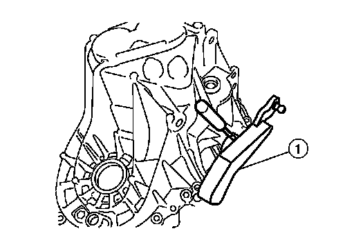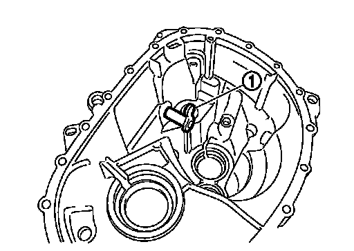 3. Remove selector lever (1) retaining pin with a pin punch to remove selector lever.