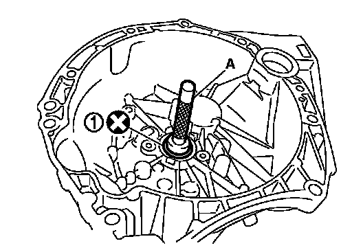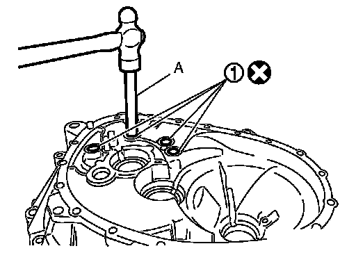 5. Install bushings (1) so that they becomes even to clutch housing edge surface, using a suitable tool (A).