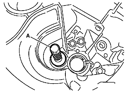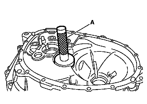 7. Install mainshaft front bearing outer race to clutch housing, using Tool (A).