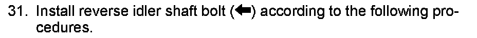 31. Install reverse idler shaft bolt (Black Arrow) according to the following procedures.
