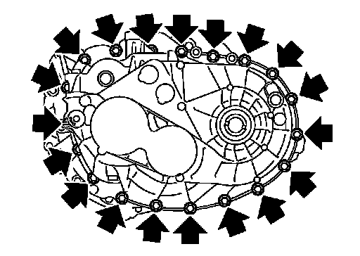 32. Tighten transaxle case bolts (Black Arrow) to the specified torque. Disassembly And Assembly.