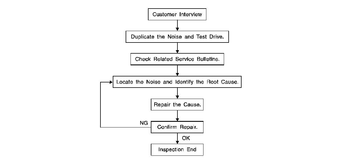 - If it is difficult to duplicate the noise, drive the vehicle slowly on an undulating or rough road to stress the vehicle body.