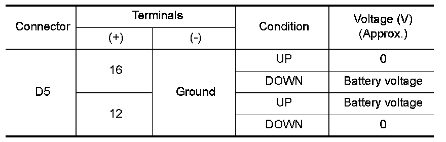 2. Check voltage between main power window and door lock/unlock switch connector and ground.