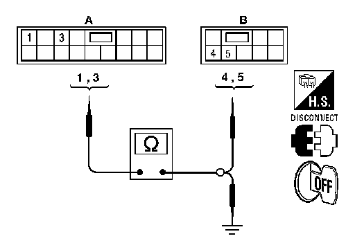 2. Check continuity between main power window and door lock/unlock switch connector (A) and rear power window switch LH connector (B).