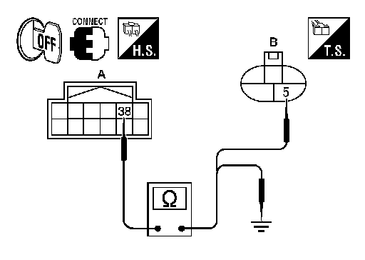 4. Check continuity between IPDM E/R harness connector (A) and ground.