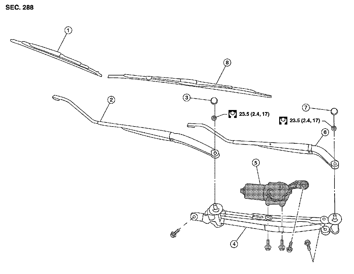 1. Turn wiper switch on to operate wiper motor, then turn wiper switch off (auto stop).