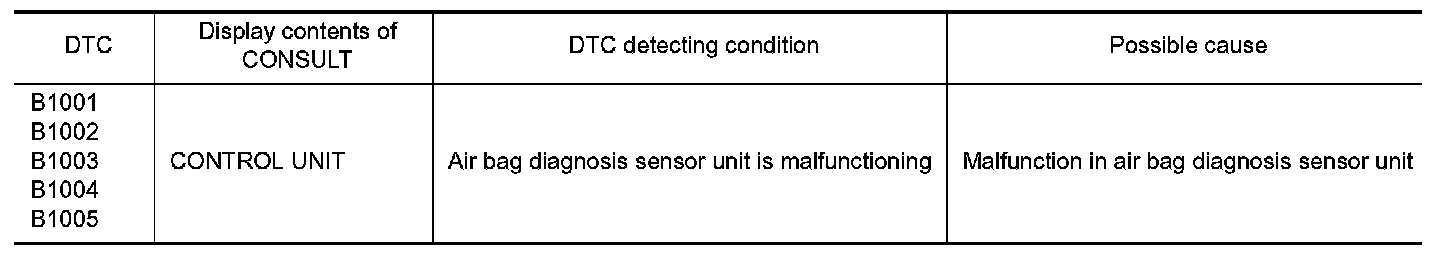1.Replace air bag diagnosis sensor unit. Refer to "Removal and Installation" Removal And Installation.