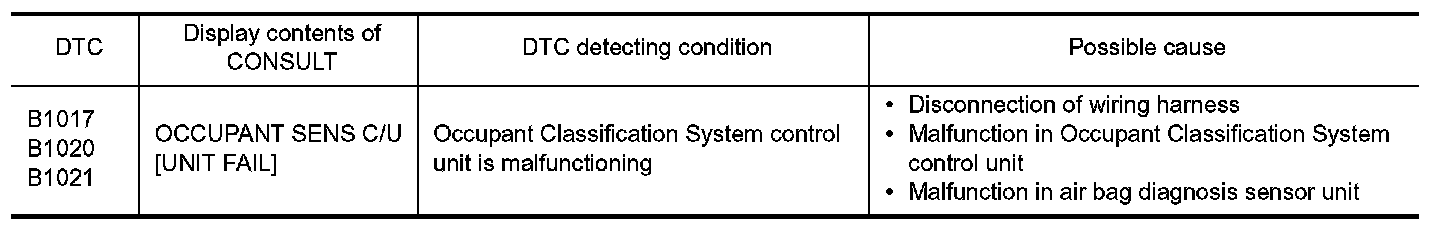 1.Replace air bag diagnosis sensor unit. Refer to "Removal and Installation" Removal And Installation.