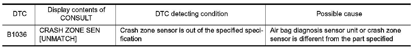 1.Replace crash zone sensor. Refer to "Removal and Installation" Removal And Installation.