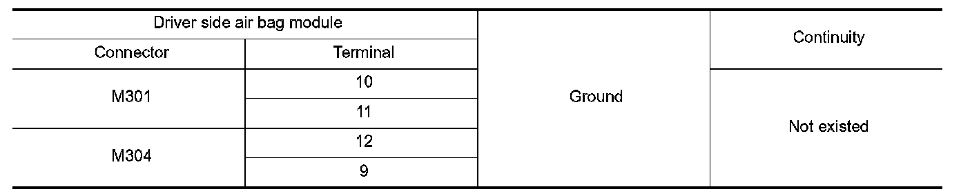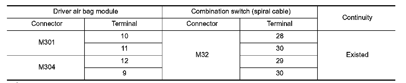 3.Check continuity between driver air bag module harness connector and combination switch (spiral cable)
