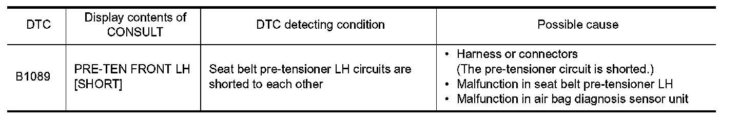 1.Replace air bag diagnosis sensor unit. Refer to "Removal and Installation" Removal And Installation.