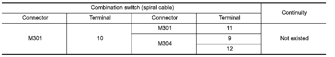 NO- Replace combination switch (spiral cable). Refer to "Removal and Installation" Removal And Installation.