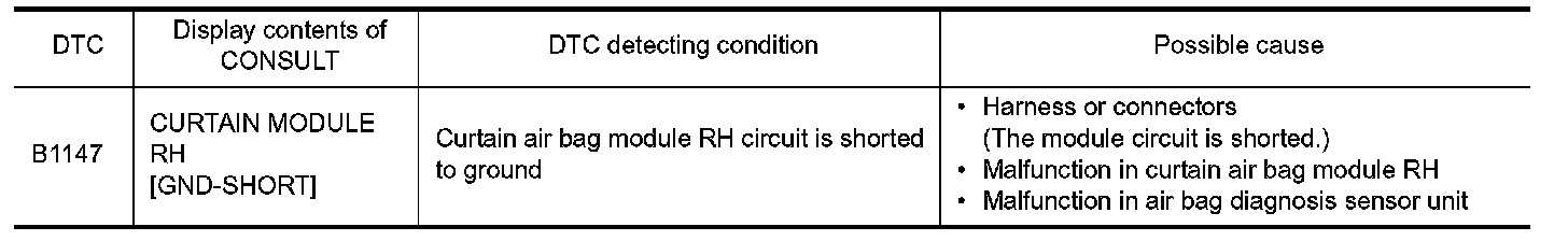 1.Replace curtain air bag module RH. Refer to "Removal and Installation" Removal And Installation.