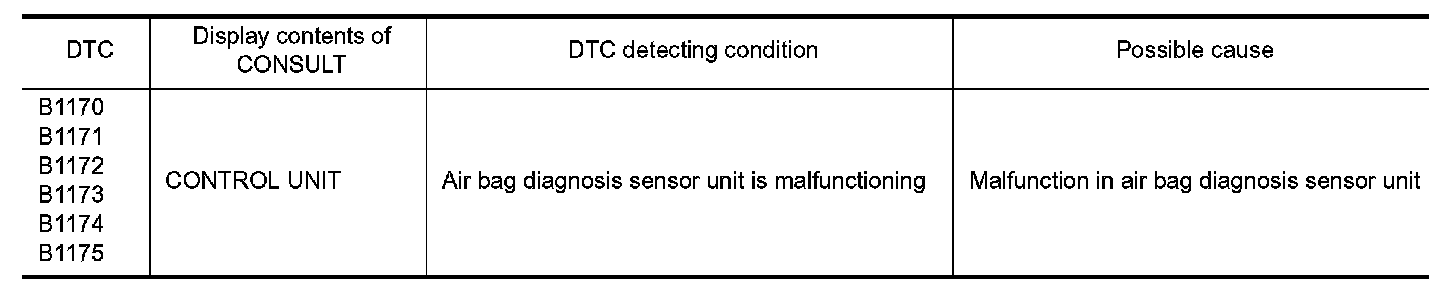 1.Replace air bag diagnosis sensor unit. Refer to "Removal and Installation" Removal And Installation.