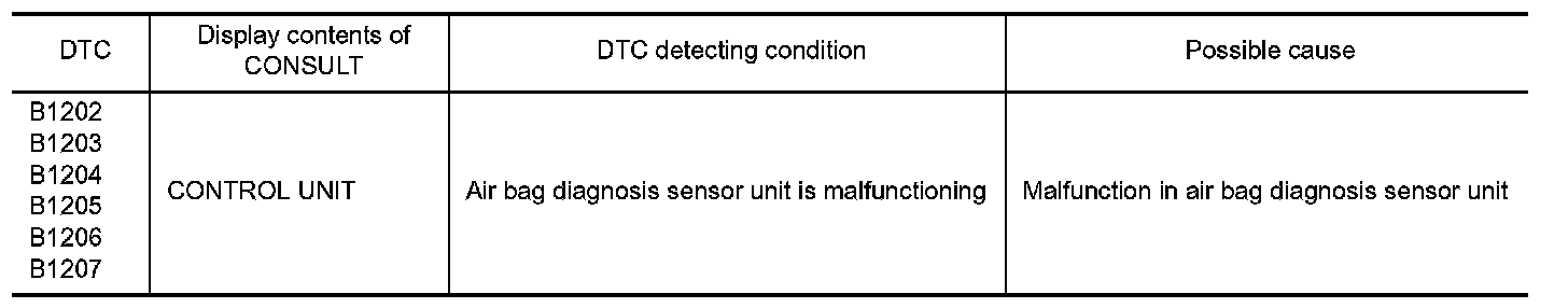 1.Replace air bag diagnosis sensor unit. Refer to "Removal and Installation" Removal And Installation.