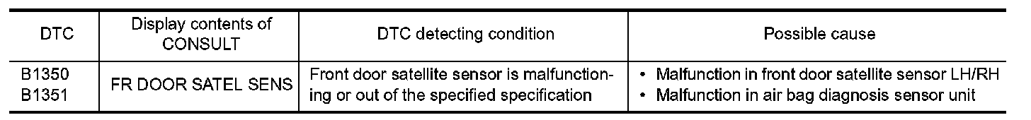 1.Replace both of front door satellite sensor. Refer to "Removal and Installation" Removal And Installation.