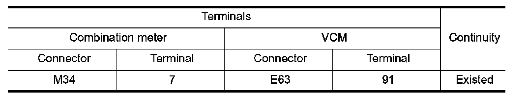 3.Check voltage between combination meter harness connector and VCM harness connector.