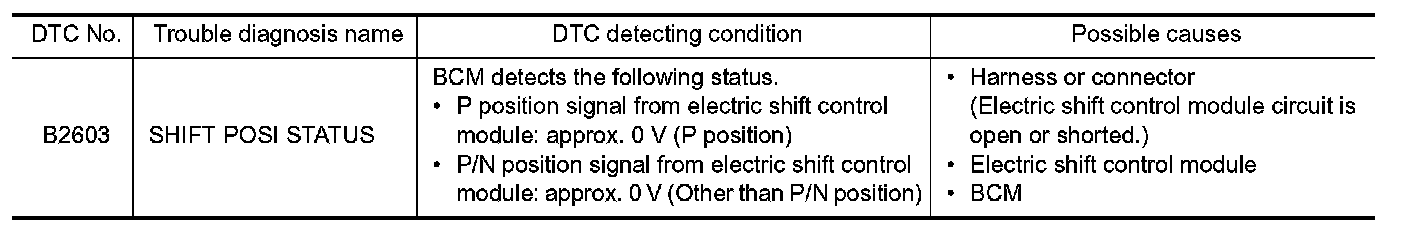 - If DTC B2603 is displayed with DTC B2601, first perform the trouble diagnosis for DTC B2601. Refer to