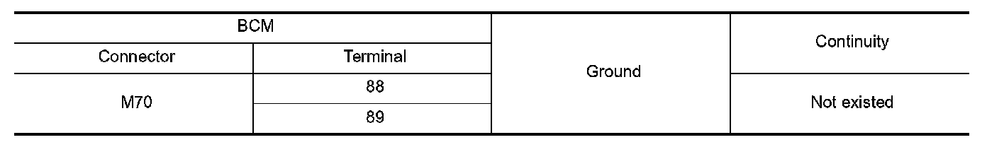 3.Check continuity between BCM harness connector and inside key antenna (luggage room) harness connector.