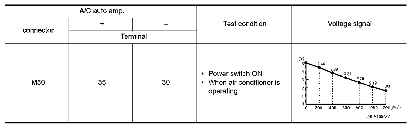 3.Move 60 W lamp to or from the sunload sensor to check that a voltage signal between A/C auto amp. harness connector terminals changes.