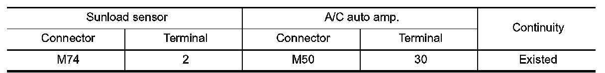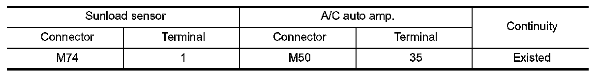 3.Check continuity between sunload sensor harness connector and A/C auto amp. harness connector.