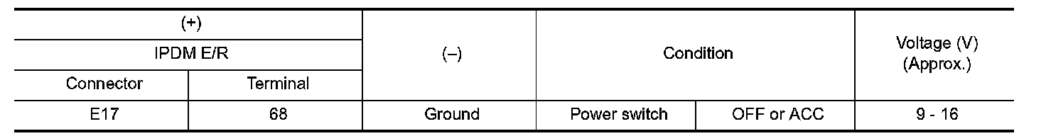 2.Check voltage between IPDM E/R harness connector and ground.