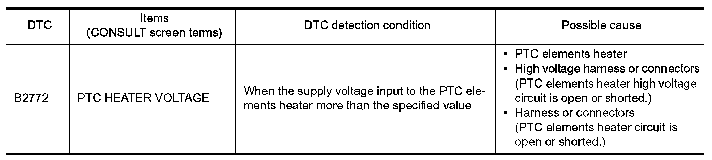 YES- Replace PTC elements heater. Refer to "Removal and Installation" Removal And Installation.