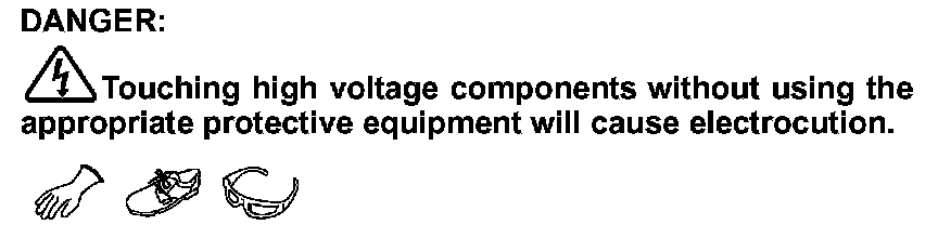 Touching high voltage components without using the appropriate protective equipment will cause electrocution.