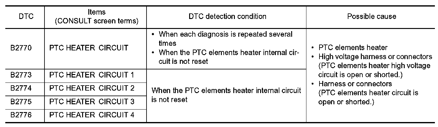 YES- Replace PTC elements heater. Refer to "Removal and Installation" Removal And Installation.