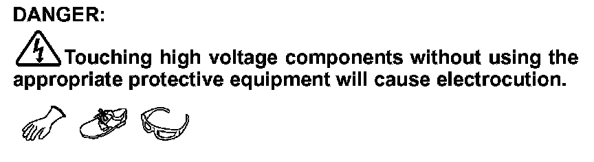 Touching high voltage components without using the appropriate protective equipment will cause electrocution.