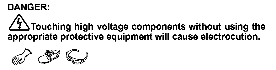 Touching high voltage components without using the appropriate protective equipment will cause electrocution.