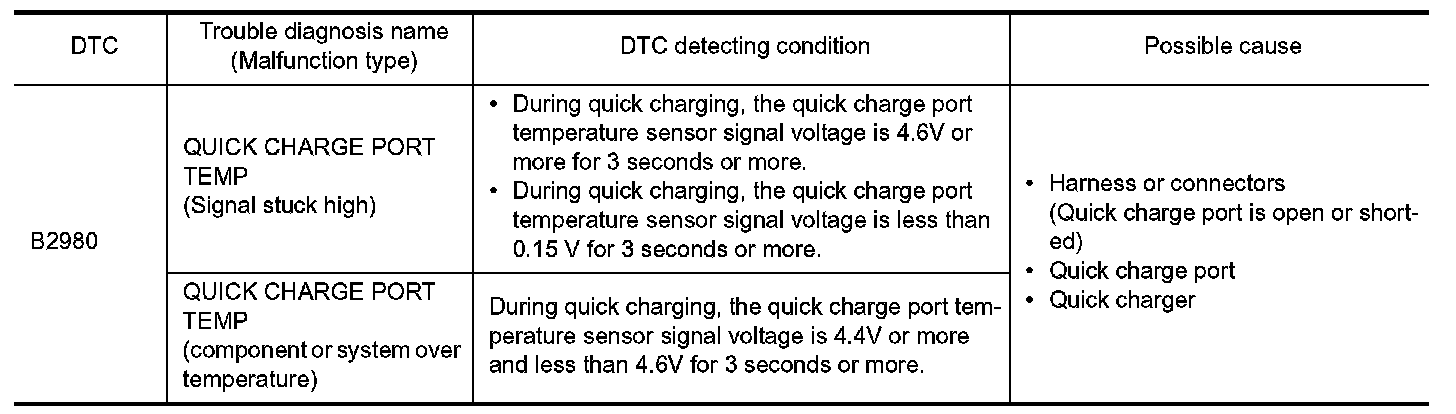 4.Perform DTC confirmation procedure again by using a quick charger other than the one is used for the previous DTC confirmation procedure. Refer to "DTC Logic" .