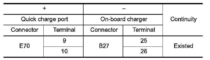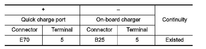 Perform component inspection. Refer to "Component Inspection (Quick Charge Port)" .