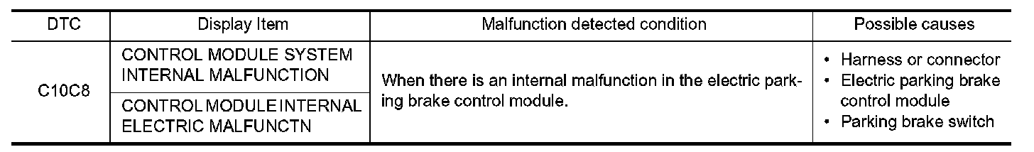 Replace electric parking brake control module even if other display than "C10C8" (CONTROL MODULE SYSTEM INTERNAL MALFUNCTION) is displayed in self-diagnosis for "EHS/PKB".