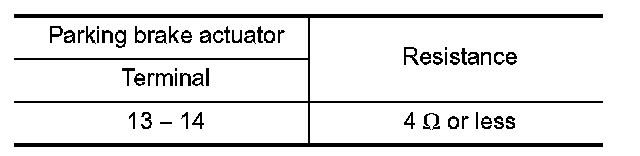 1.Check the resistance between parking brake actuator connector terminals.