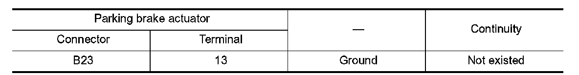 2.Check the continuity between parking brake actuator harness connector and ground.