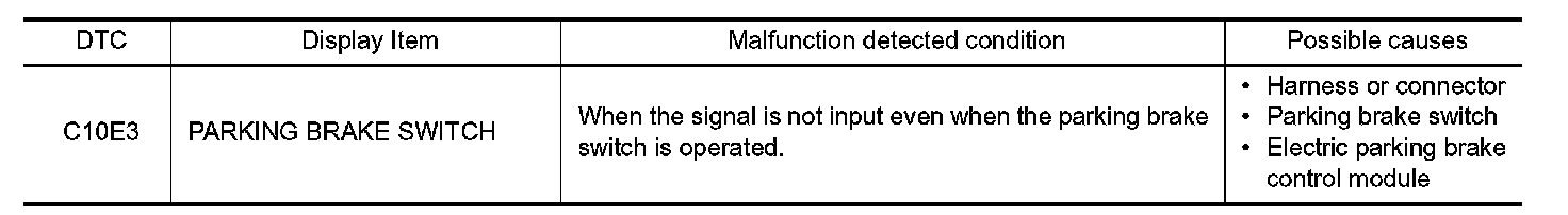 Check that data monitor displays "ON" or "OFF" when parking brake switch is pull or push. Refer to "Reference Value" Pinout Values and Diagnostic Parameters.