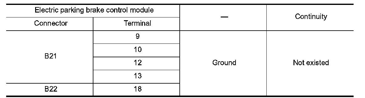 4.Check the continuity between electric parking brake control module harness connector and parking brake switch harness connector.