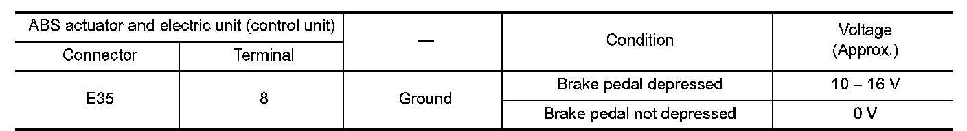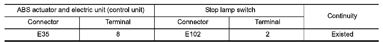 3.Check the continuity between ABS actuator and electric unit (control unit) harness connector and stop lamp switch harness connector.