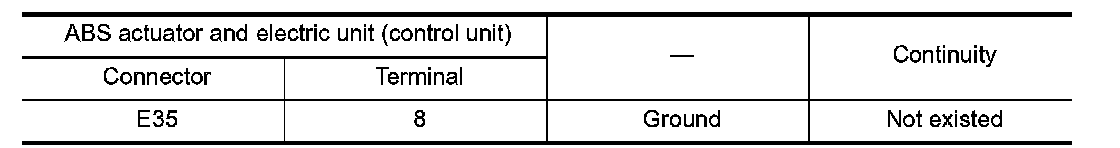 4.Check the continuity between ABS actuator and electric unit (control unit) harness connector and the ground.