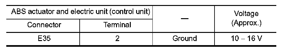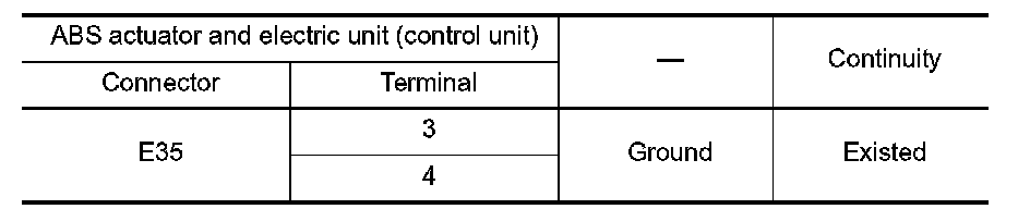 2.Check the continuity between ABS actuator and electric unit (control unit) harness connector and the ground.