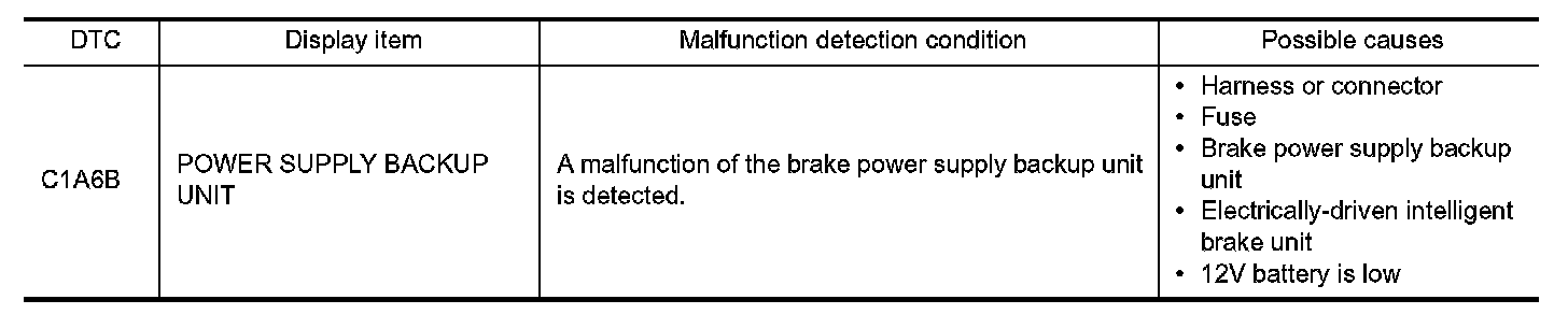 "ERR6"- Replace the brake power supply backup unit. Refer to "Removal and Installation" Removal And Installation.