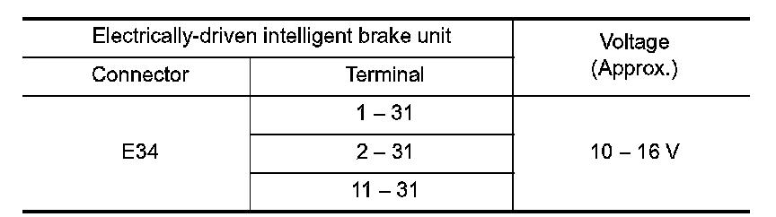 6.Check the voltage between the electrically-driven intelligent brake unit harness connector terminals.