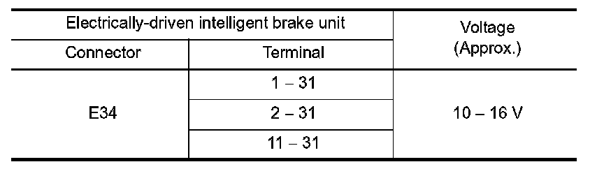6.Check the voltage between the electrically-driven intelligent brake unit harness connector terminals.