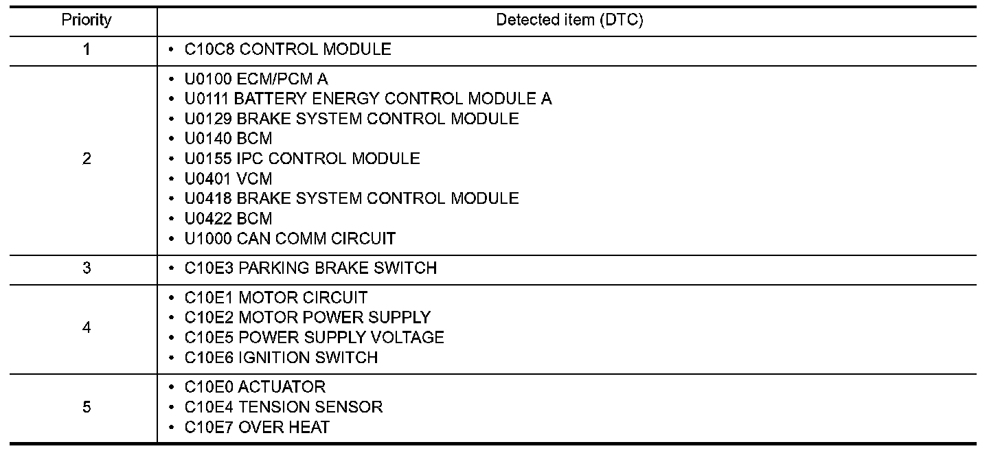 When multiple DTCs are displayed simultaneously, check one by one according to the following priority list.