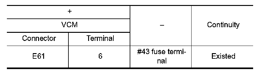 2.Check the continuity between VCM harness connector and fuse terminal.