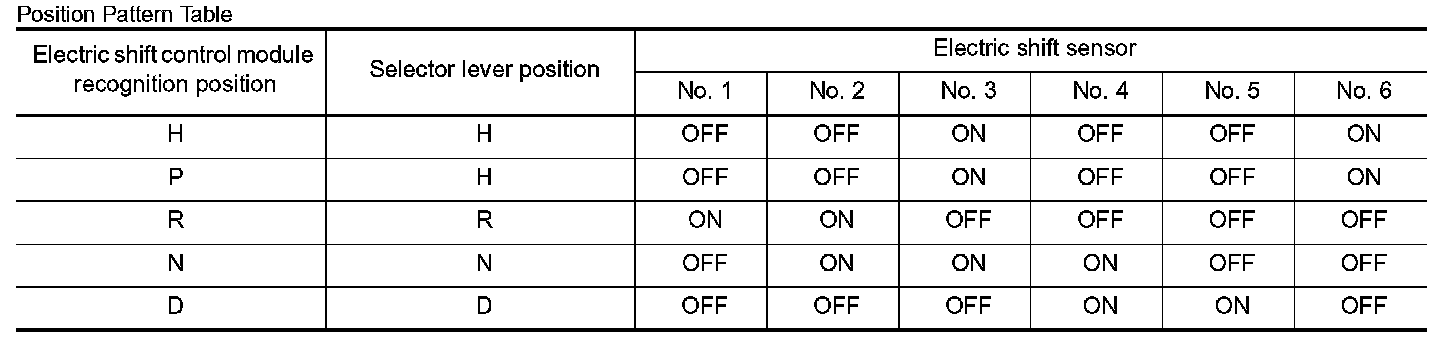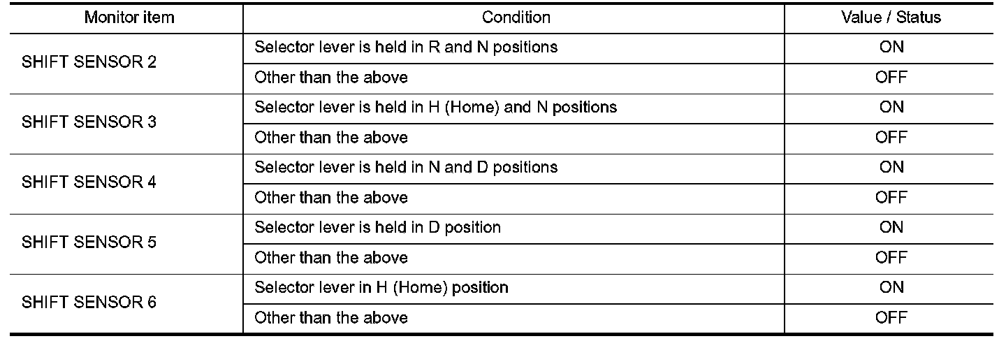 4.Operate the selector lever to identify a electric shift sensor of which value does not change.