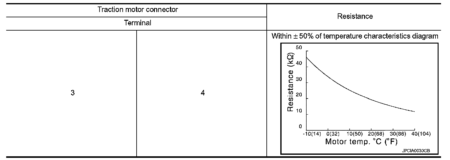 Check the traction motor temperature sensor. Refer to "Component Inspection (Traction Motor Temperature Sensor)" .
