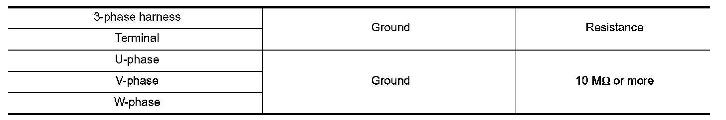 As each harness (U-phase, V-phase, and W-phase) contacts to each other inside the traction motor, check resistance of a phase.