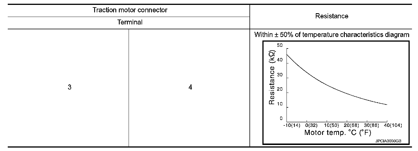 Check the traction motor temperature sensor. Refer to "Component Inspection (Traction Motor Temperature Sensor)" .
